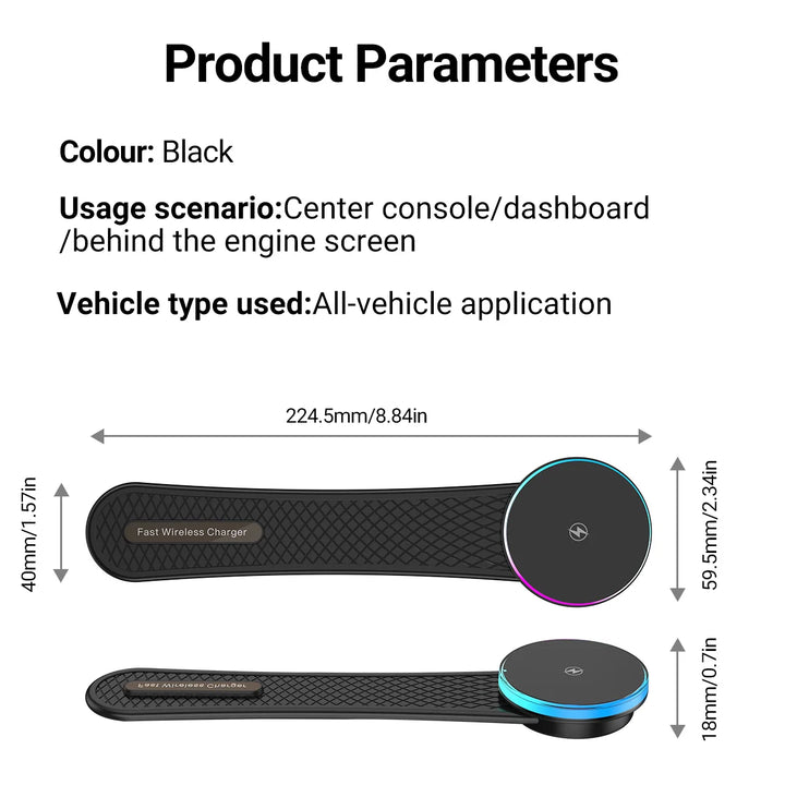 | In the Box | Magnetic wireless charger mount, VHB adhesive pad, metal alignment ring |