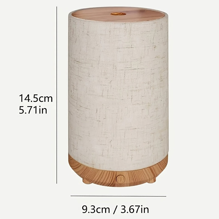 Essential Oil Diffuser 80ml – USB Soundwave Humidifier with Fabric Cover, Warm LED & Auto Shut-Off (Wood-Grain Base)