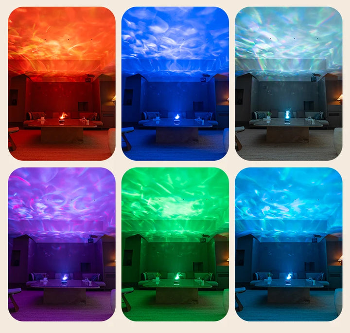 Turn any room into a relaxing retreat. This 3D flame essential oil diffuser combines a 360-degree starry sky projector with quiet ultrasonic humidification for cozy ambience and easier unwinding. The 200ml tank outputs a fine 30–45 ml/h mist, pairing beautifully with your favorite essential oils to freshen air and support better rest. Choose colorful, rainbow-style ambient lighting to set the mood, then relax as the soothing flame effect flickers gently in the background.