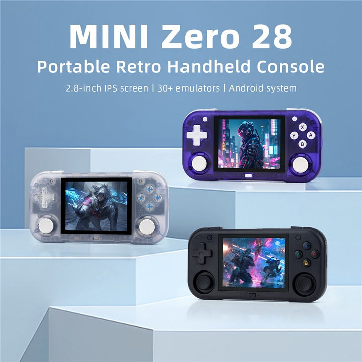AMPOWN MINI ZERO 28 Handheld Game Console 64 Bit Android 2.8 Inch IPS Screen Retro Gaming Controller, with 128G TF Card