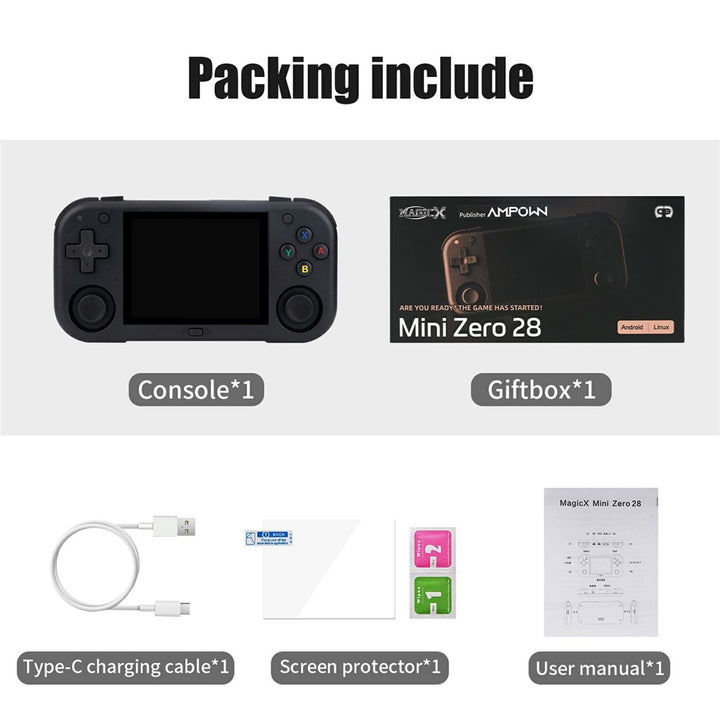 - 【Versatile Gaming Experience】AMPOWN MINI ZERO 28 offers a vast library of classic games with support for multiple emulators, including PSP, PSX, NDS, N64, GBA, SNES, NES, and many more.