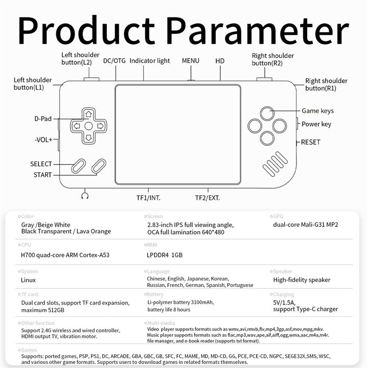 - 【Powerful Performance】Equipped with a quad-core ARM Cortex-A53 CPU (H700) clocked at 1.5GHz and a dual-core Mali-G31 MP2 GPU, ensuring smooth gameplay and quick load times