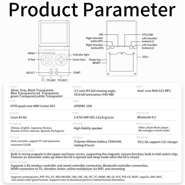 - 【Powerful Performance】Equipped with a quad-core ARM Cortex-A53 CPU (H700) clocked at 1.5GHz and a dual-core Mali-G31 MP2 GPU, ensuring smooth performance for various games and applications