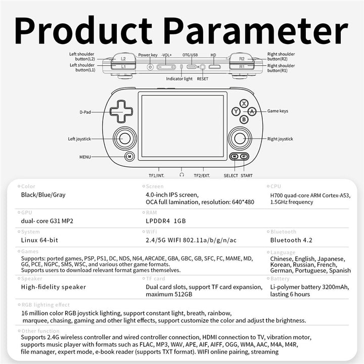 - 【Powerful Performance】Equipped with a quad-core H700 ARM Cortex-A53 CPU (1.5GHz) and dual-core G31 MP2 GPU, ensuring smooth gameplay and quick response times