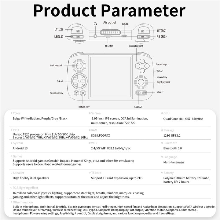 - Equipped with the advanced UNISOC T820 6nm EUV 5G SOC chip and a high-speed cooling fan, this handheld console delivers exceptional performance with rapid cooling for an uninterrupted and smooth gaming experience