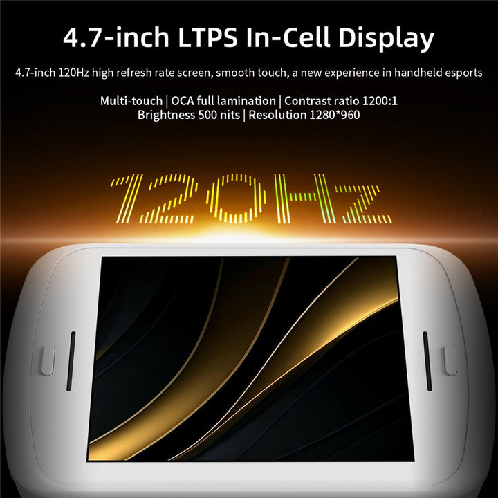 - 【Immersive Display】Enjoy gaming on a 4.7-inch LTPS incell touchscreen with 1280x960 resolution and up to 120Hz refresh rate, offering vibrant visuals and responsive touch controls.