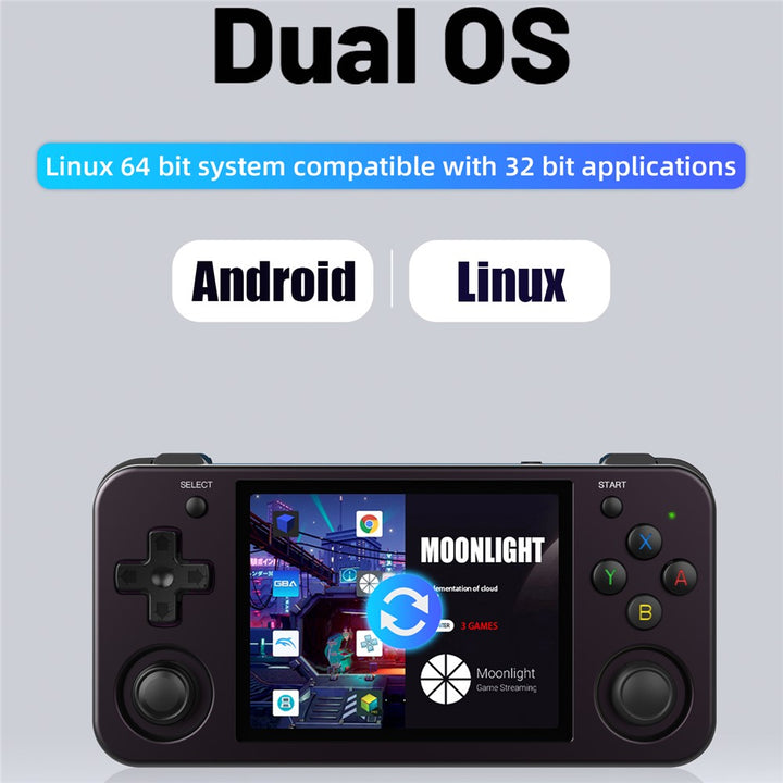 - Supports Over 20 Game Formats: Play your favorite titles from PSP, DC, SS, PS1, NDS, N64, CPS, FBA, NEOGEO, GBA, GB, SFC, FC, MD, GG, PCE, and more. With 32GB of Android storage and an additional 16GB TF card for Linux, the console supports up to 512GB TF cards, giving you ample space for your gaming library