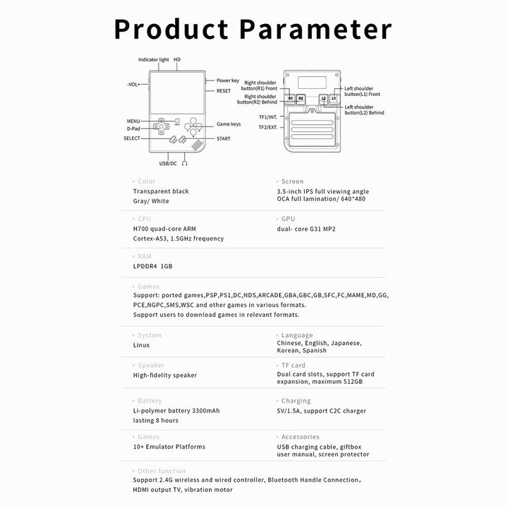 - 【Powerful Performance】Equipped with a quad-core ARM Cortex-A53 CPU (H700) clocked at 1.5GHz and a dual-core G31 MP2 GPU, ensuring smooth emulation and gameplay
