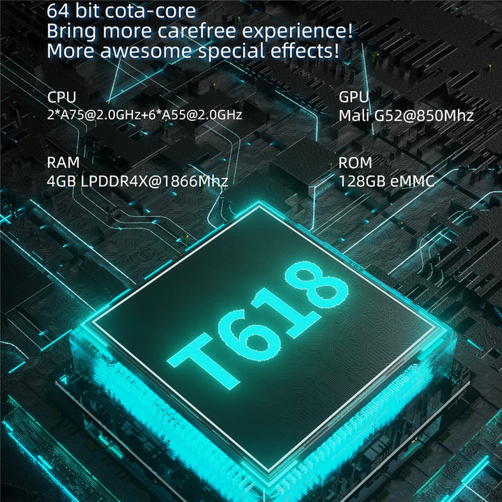 Unisoc Tiger T618 64-bit cota-core 2*A75@2.0GHz+6*A55@2.0GHz |