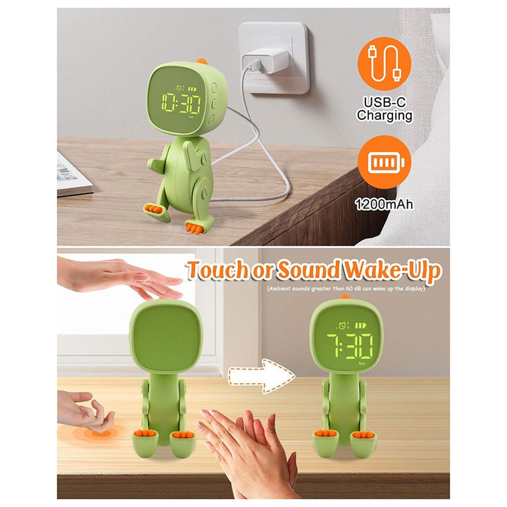 Dinosaur Kids Alarm Clock Bedside Clock with Night Light Digital Display Children Sleep Trainer