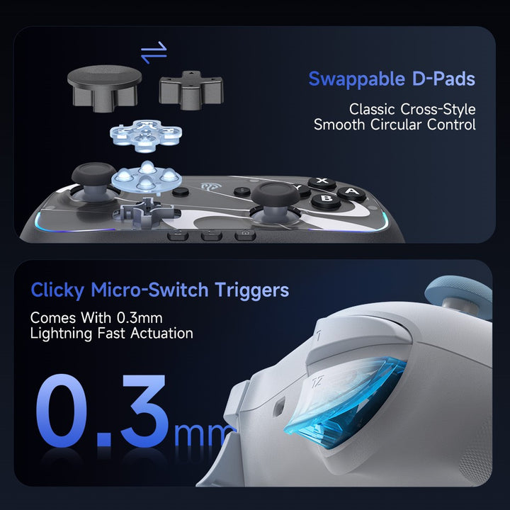 - 【Switchable D-pad】Toggle between circular and cross-shaped D-pads for quick directional inputs or precise game control, adapting instantly to your gaming needs.