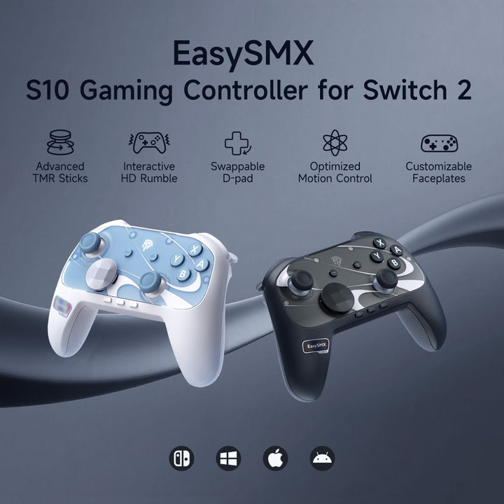 - 【Compatible with Nintendo Switch 2】The EasySMX S10 is compatible with Nintendo Switch 2, offering seamless compatibility, one-key wake-up, a dedicated C button for in-game chat, enhanced motion control, and built-in NFC for amiibo support.
