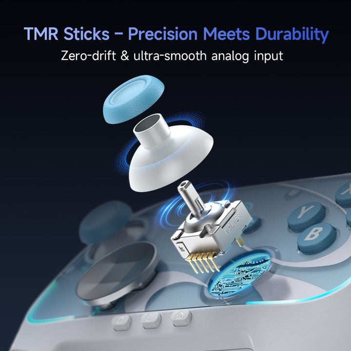 - 【Next-Gen TMR Joysticks】Equipped with advanced TMR technology for superior precision and durability, combined with a stable 1000Hz wired polling rate and 125Hz Bluetooth-compatible polling rate for ultra-responsive, drift-free control.