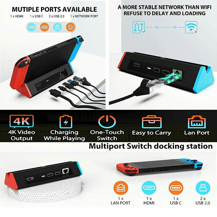 For Nintendo Switch 2 Docking Station 4K / 120Hz HD 2.1 Extension Hub with USB 3.0 and LAN Port