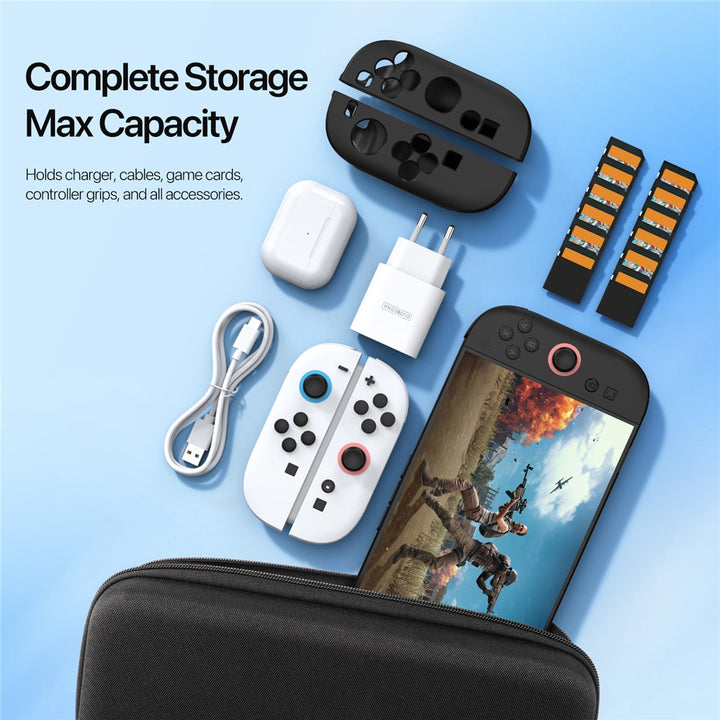 - 【Ample Storage Space】Designed to accommodate all your accessories, including chargers, data cables, game cards, and controller grips, ensuring everything is neatly organized in one place.