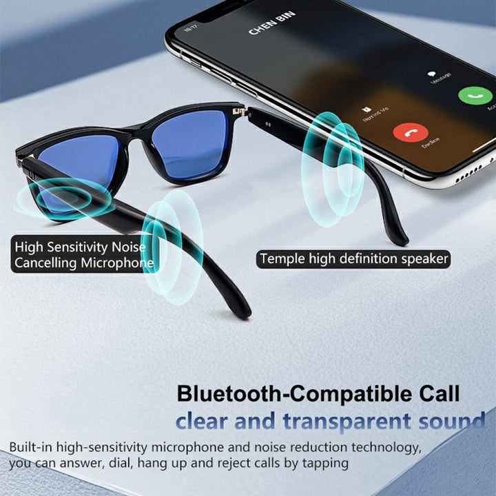 - 【Multi-Functional Smart Glasses】Enjoy Bluetooth-compatible calling, music playback, voice assistant, remote photo capture, and AI translation in one sleek device.