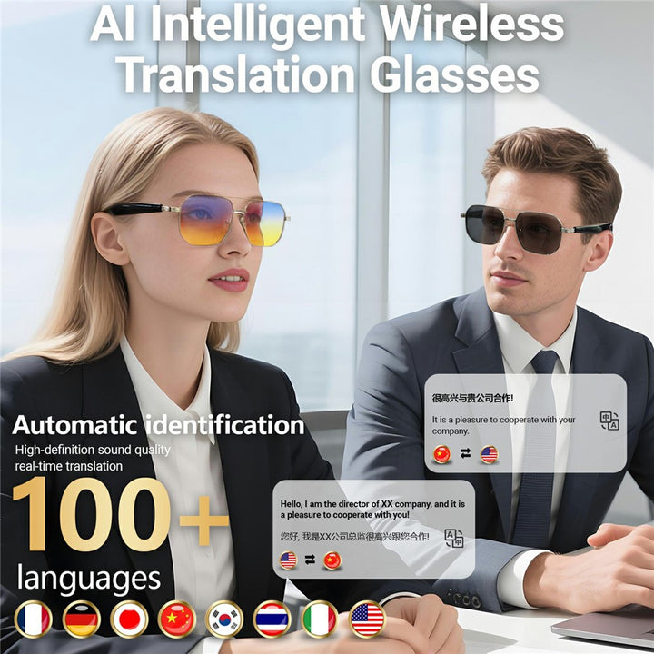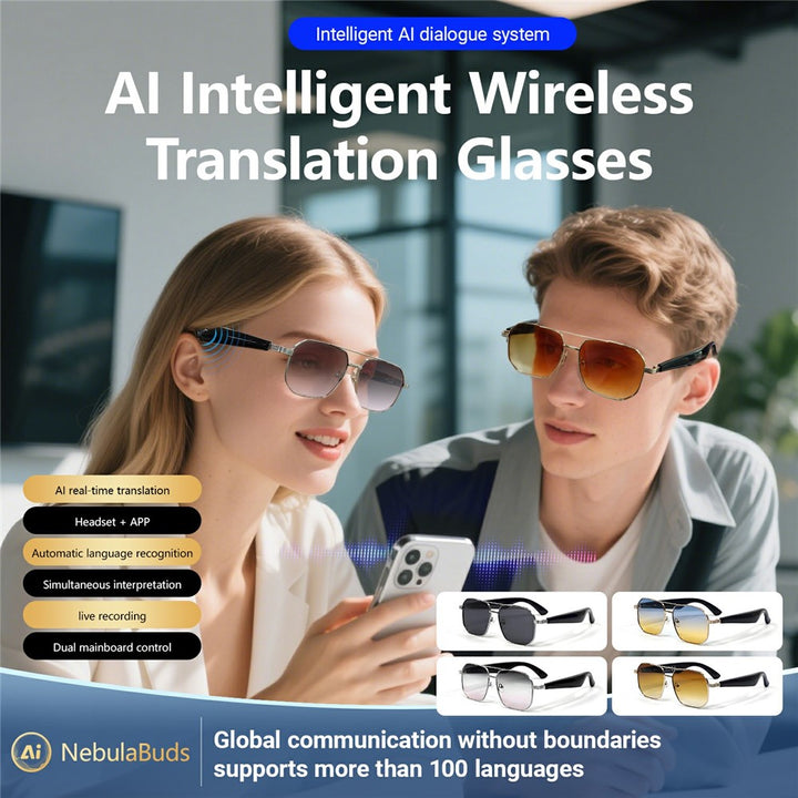 GY300 AI Translation Smart Glasses Bluetooth-compatible Wireless Headset Eyeglasses Anti UV Sports Sunglasses