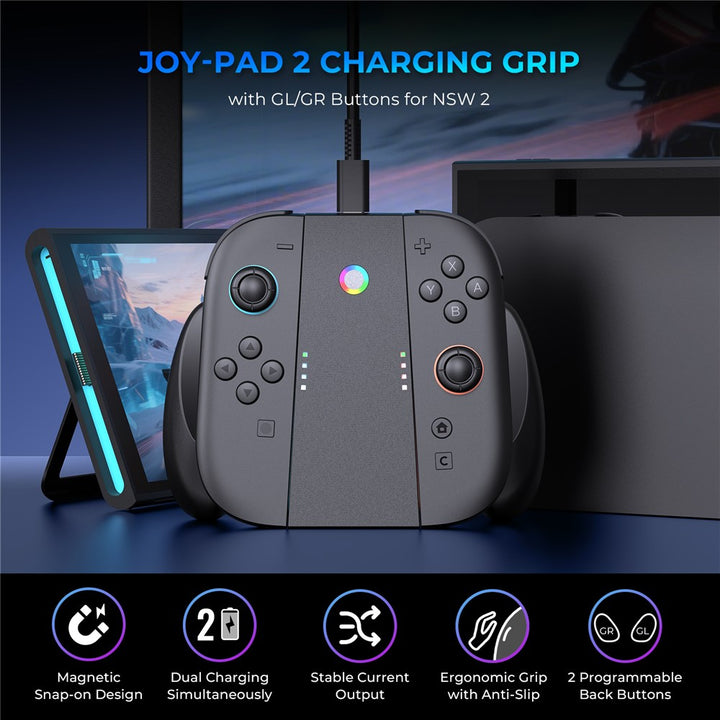 JYS-NS2287B For Nintendo Switch 2 Controller Charging Grip Magnetic Charging Dock with GL / GR Buttons