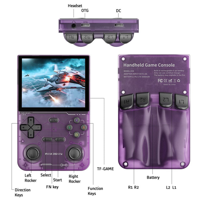 K36 Open Source Handheld Linux Gaming Console Nostalgic Arcade Game Machine with 64G Memory Card