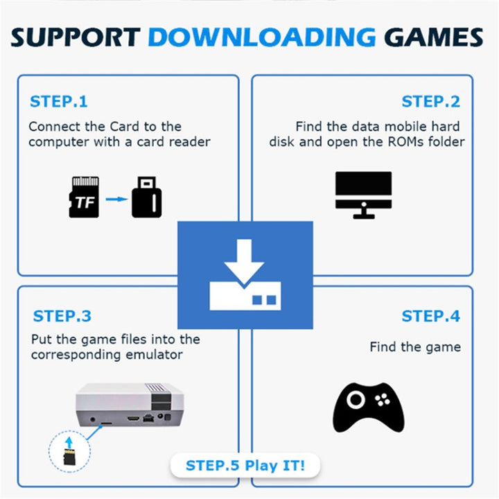 - Support downloading games by yourself: if you have other more interesting games, you can download the files online and copy them to the memory card