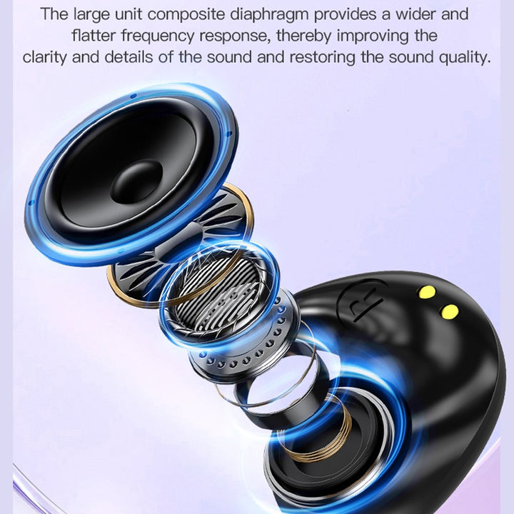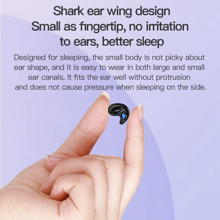 - 【Shark Fin Ear Wings】Fingertip-sized earbuds with shark fin design ensure a secure fit without discomfort during sleep or activities.
