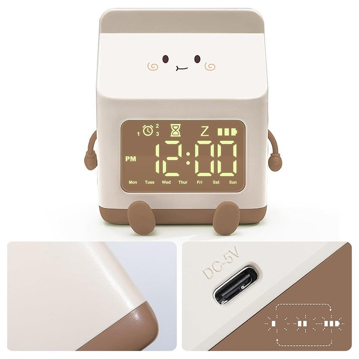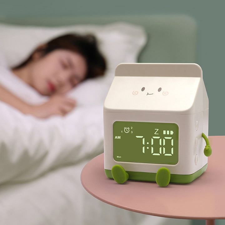 Milk Box Shape Clock with Snooze Kids LED Smart Clock Rechargeable Alarm Clock for Bedroom Room