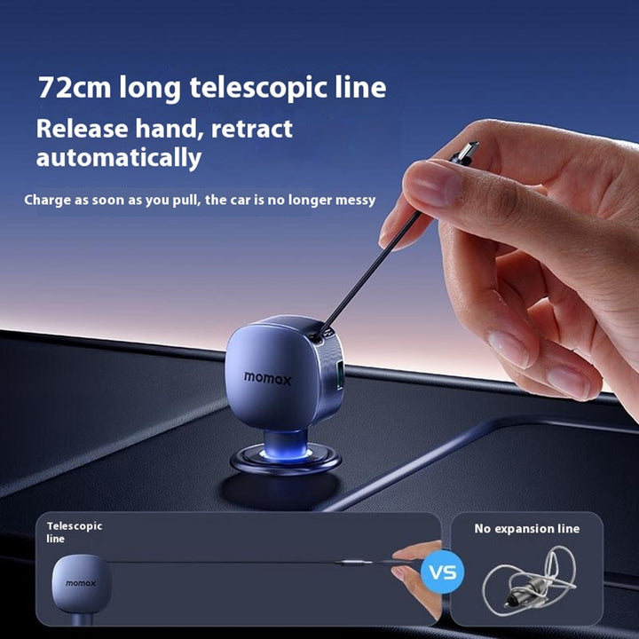 - 【Retractable Cable Design】Features a 72cm retractable cable that extends with a simple pull and automatically retracts, eliminating cable clutter in your vehicle.
