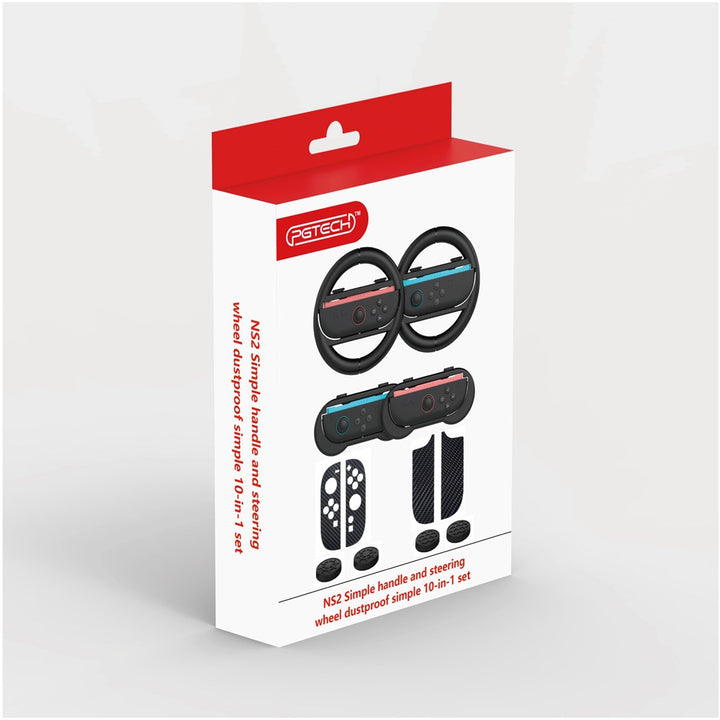 PGTECH GP-393 For Nintendo Switch 2 10 in 1 Controller Accessory Kit Joystick Caps Steering Wheel Grip Handle and Sticker Set