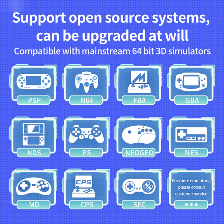 - Open source JELOS system: Compatible with mainstream 64-bit 3D simulators, supports more than 30 emulators, up to for PSP