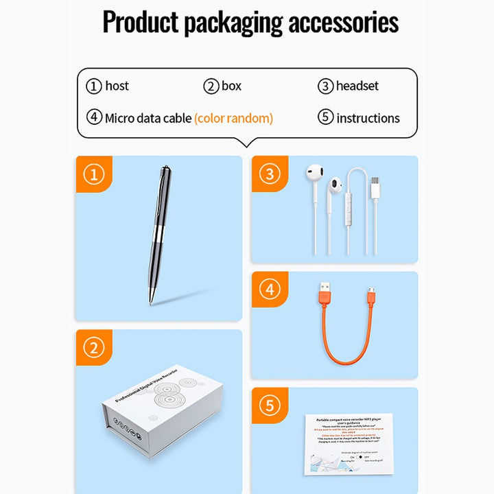 - Lossless PCM recording 512Kbit, optional voice-activated recording 50DB, automatic split recording, can be changed to 1536KKbit
