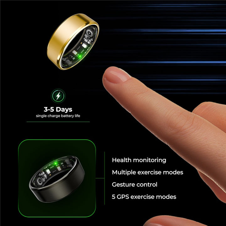 - 【Advanced Sleep Tracking】Precisely monitor your sleep patterns, heart rate, and blood oxygen levels with this smart ring design.
