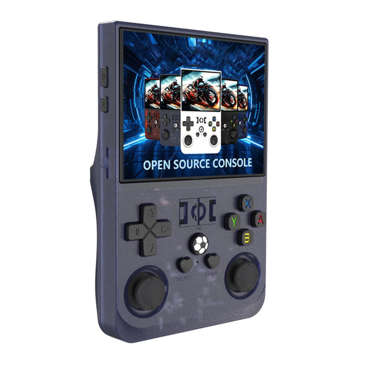 - 【Powerful Gaming Experience】The R36 MAX handheld console features an RK3326 original chip and 1GB RAM + 8GB EMMC storage, capable of running demanding games like God of War.