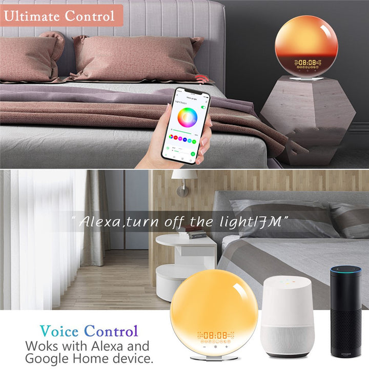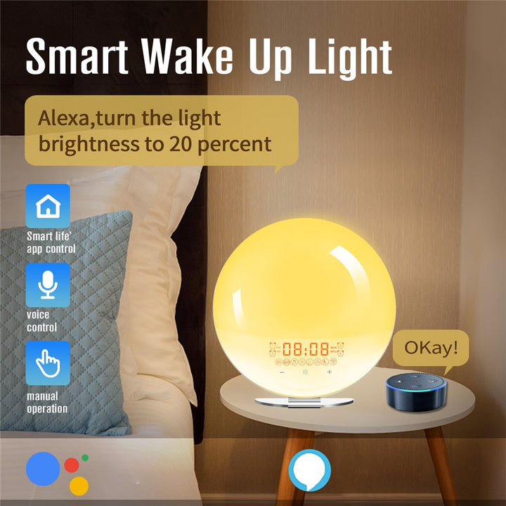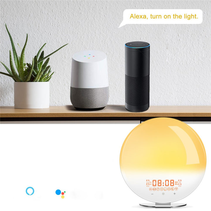 SH-02S Sunrise Sunset Simulation Smart WiFi Wake Up Light App Voice Control Alarm Clock FM Radio Bedside Lamp