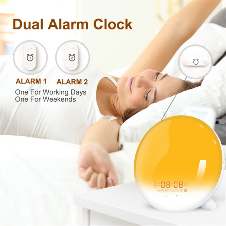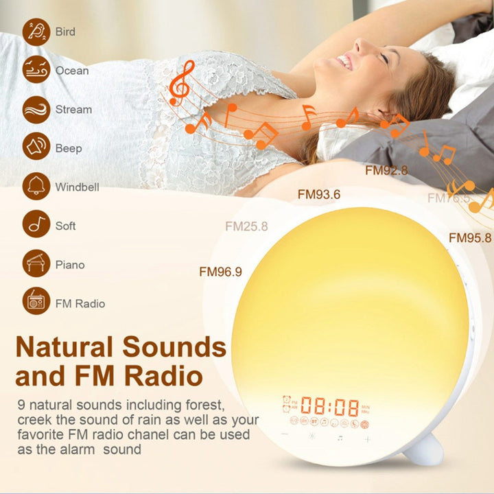 SH-123 Digital Wake-Up Light Sunrise / Sunset Simulation Alarm Clock with FM Radio Night Light Bluetooth-compatible Wireless Speaker