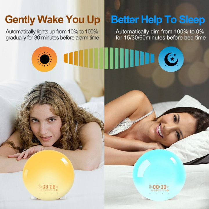 - Automatically lights up from 10% to 100% gradually for 30 minutes before alarm time