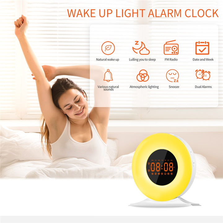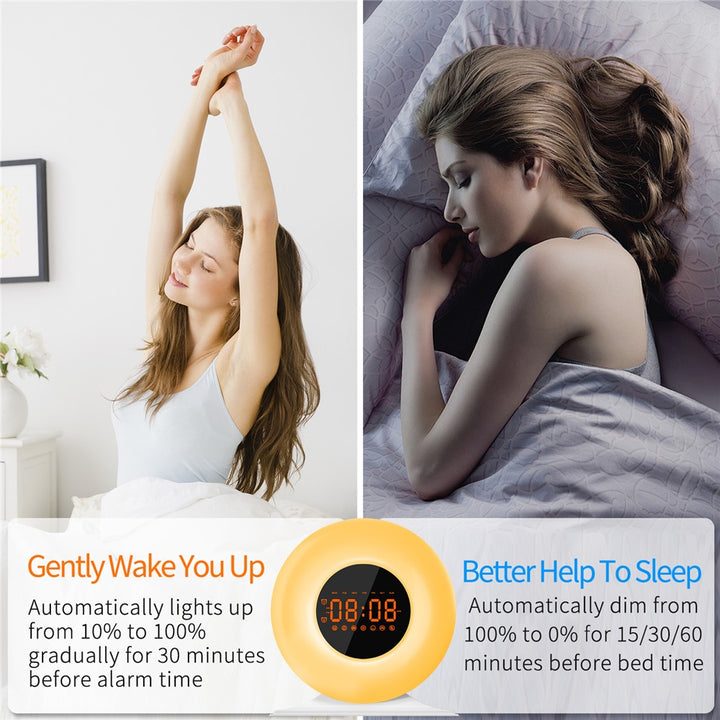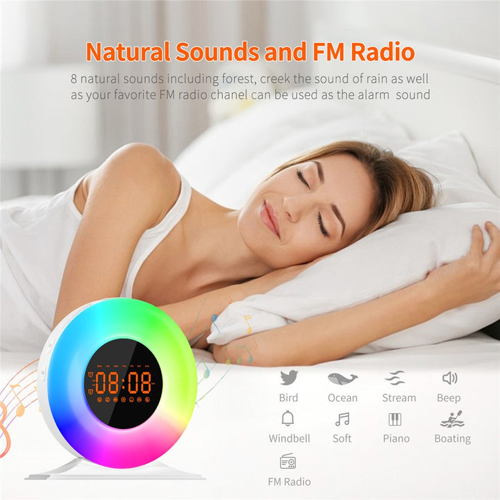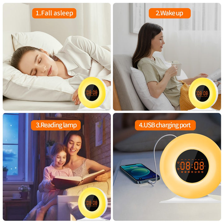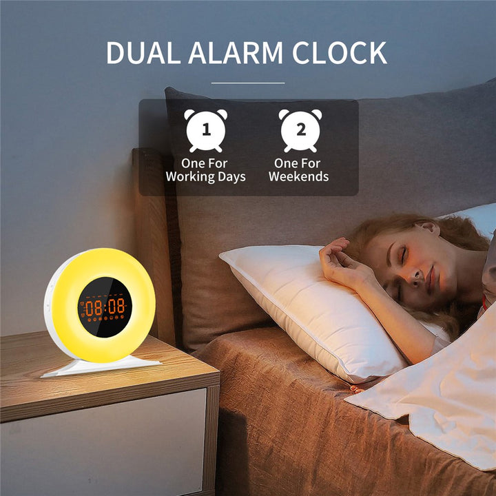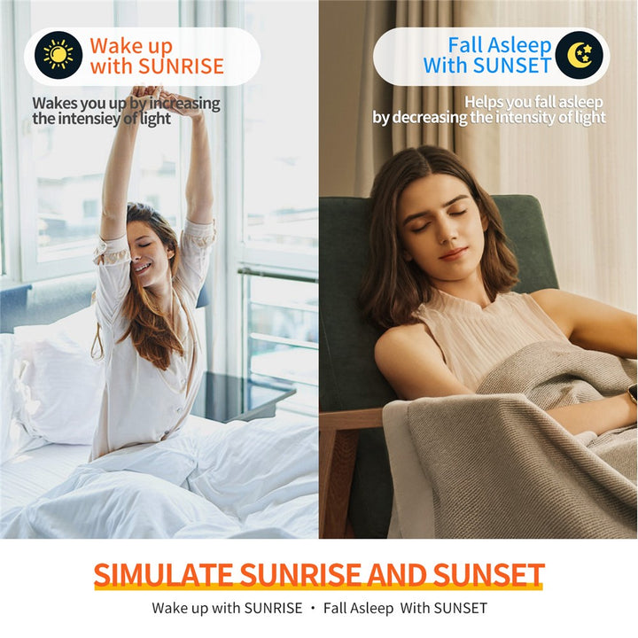 - 【Natural Wake-Up Light】Gradually brightening light simulates sunrise for a gentle, natural wake-up experience, complemented by customizable alarm sounds.