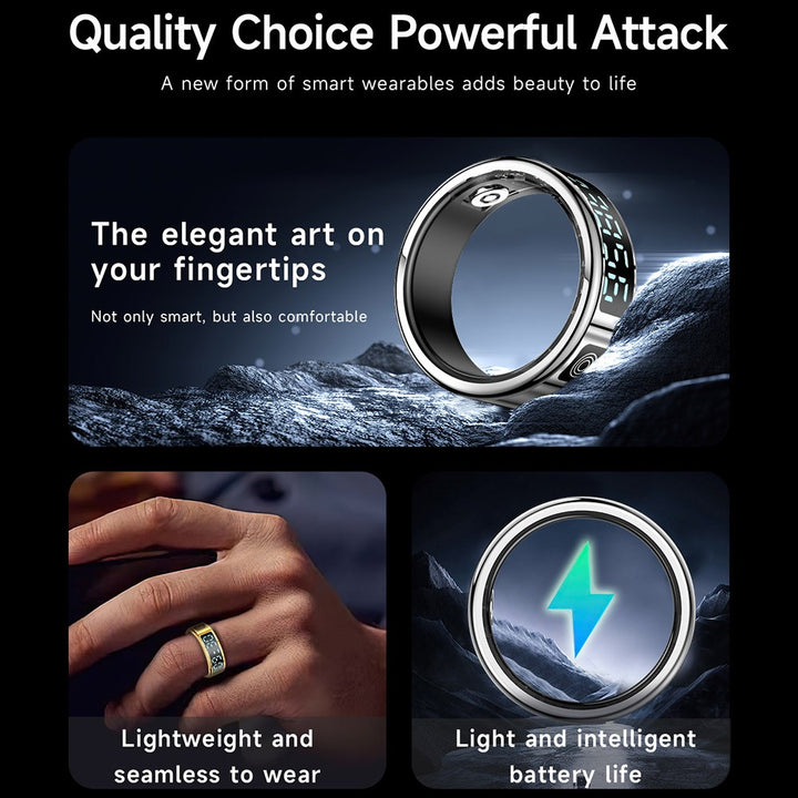 - 【Smart Health Tracking】This intelligent ring monitors sleep patterns, blood oxygen levels, and heart rate, providing comprehensive health insights