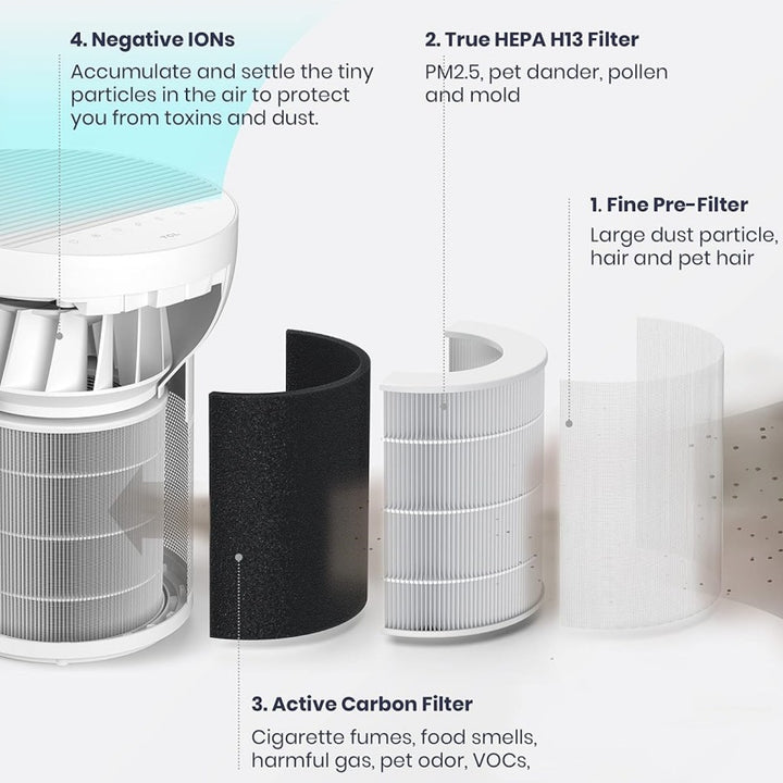 | Particle Removal | Removes up to 99.97% of particles ≥0.3 µm (dust, pollen, pet dander, smoke) :contentReference[oaicite:5]{index=5} |