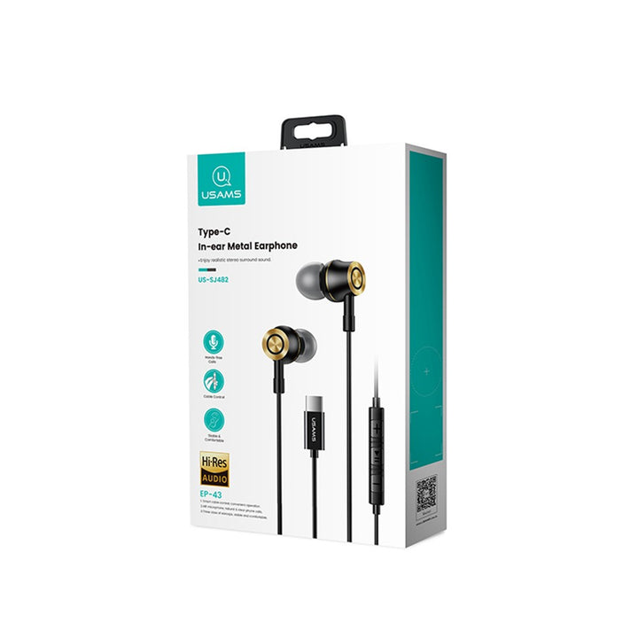 USAMS US-SJ482-EP-43 Type-C In-ear Metal Headsets Stereo Earphones, 1.2m