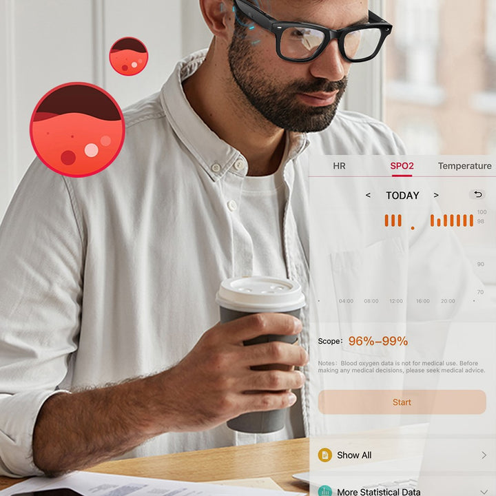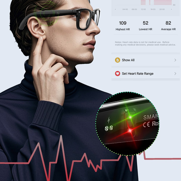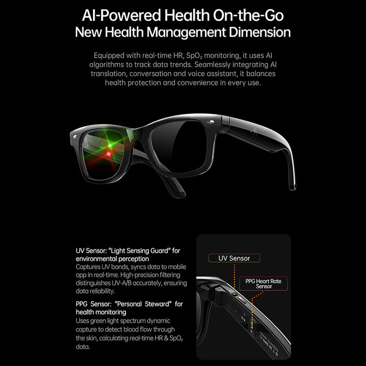 W300 AI Smart Glasses Translator UV Heart Rate Blood Oxygen Monitor BT Calling Health Management