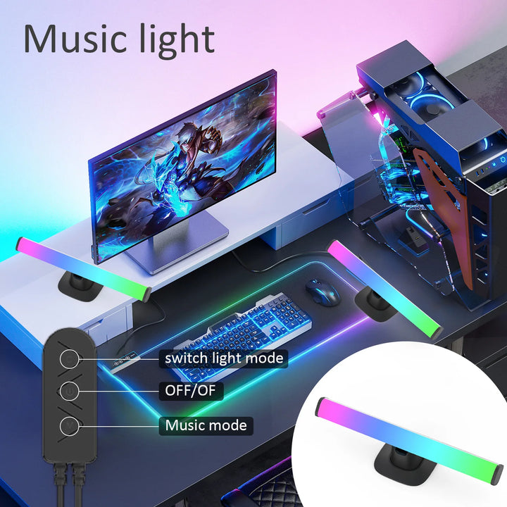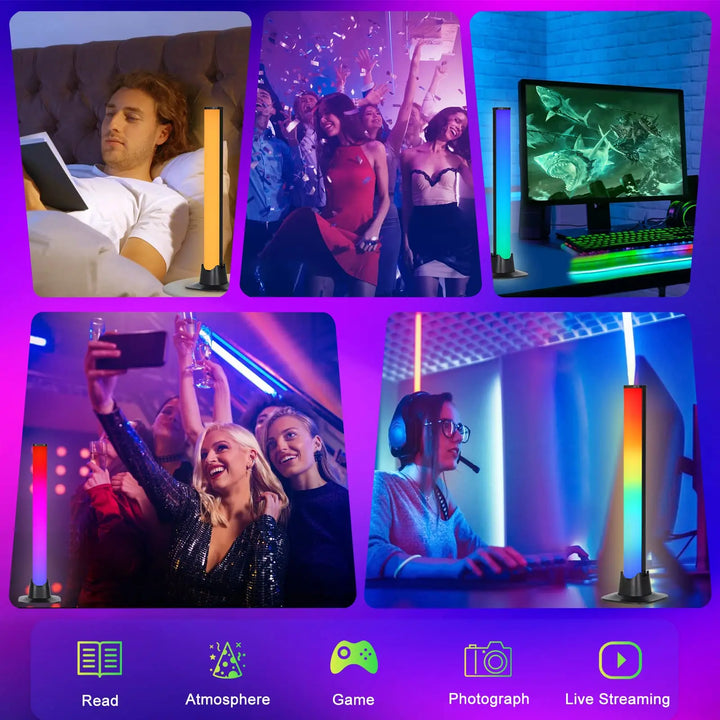 Create immersive ambience for gaming, films, and music. These RGBIC music-sync light bars deliver multi-color effects and smooth gradients, reacting in real time to sound. Control everything from your phone via Tuya or with hands-free voice using Alexa/Google Assistant. Set scenes, DIY effects, or schedule routines; mount vertically or horizontally to frame your setup, backlight a wall, or elevate bedroom and holiday décor.