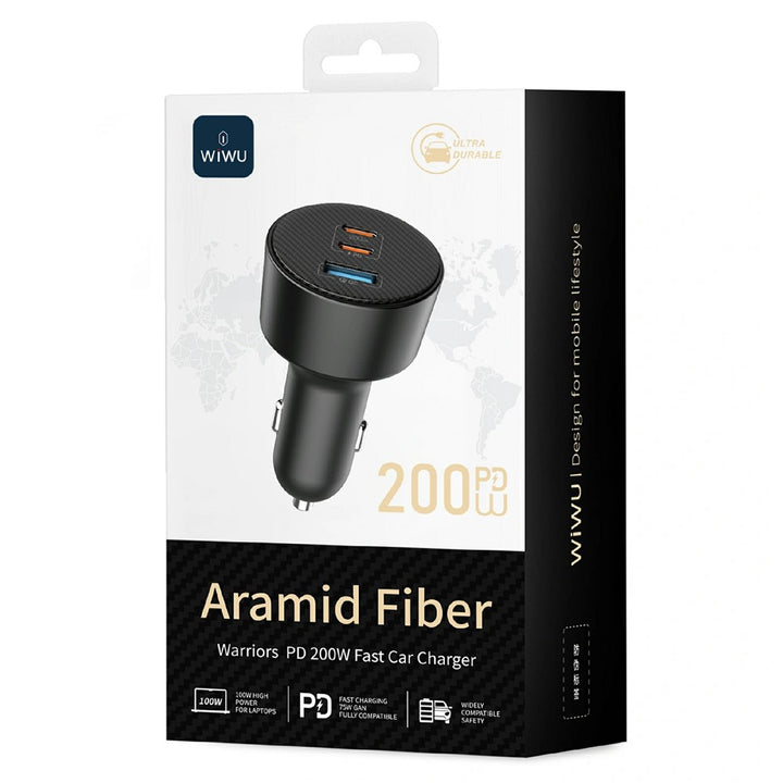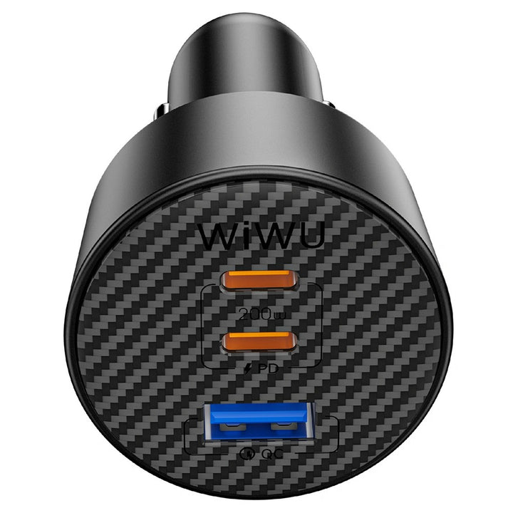 WIWU Wi-CC026 PD 200W Fast Charging Adapter for Vehicle USB A + Dual Type C 3 Ports Car Charger
