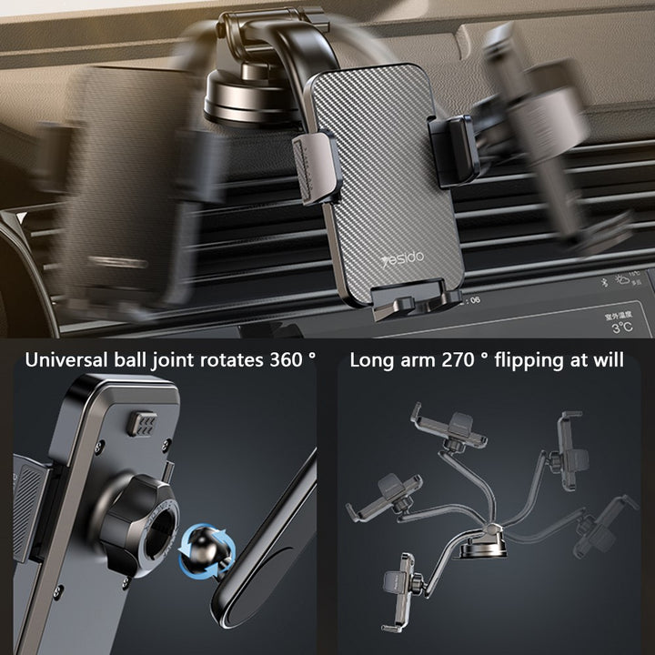YESIDO C172 Suction Cup Multi-Function Dashboard Phone Mount Car Magnetic Phone Holder for iPhone 16 / 16 Plus / 16 Pro / 16 Pro Max
