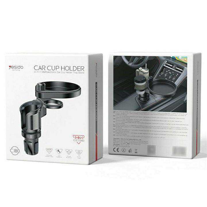 - 【Versatile Cup Holder Tray】The YESIDO C180 is a multifunctional car accessory that combines a cup holder, beverage tray, and storage compartment for enhanced in-vehicle organization.