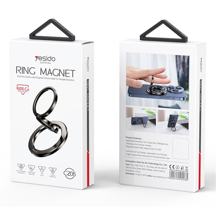 YESIDO C206 Double Ring Zinc Alloy Magnetic Folding Ring Kickstand for Mobile Phone