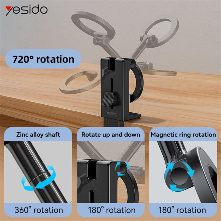 YESIDO C298 Portable Travel Magnetic Phone Holder Zinc Alloy Adjustable Cellphone Bracket