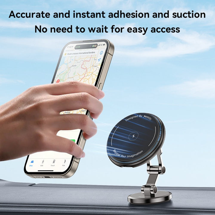 YESIDO C306 15W Magnetic Phone Wireless Charger Zinc Alloy Car Dashboard Phone Charging Stand