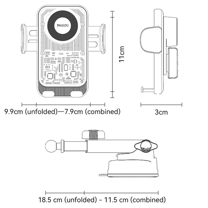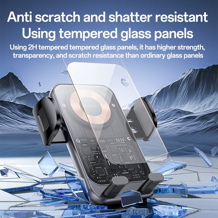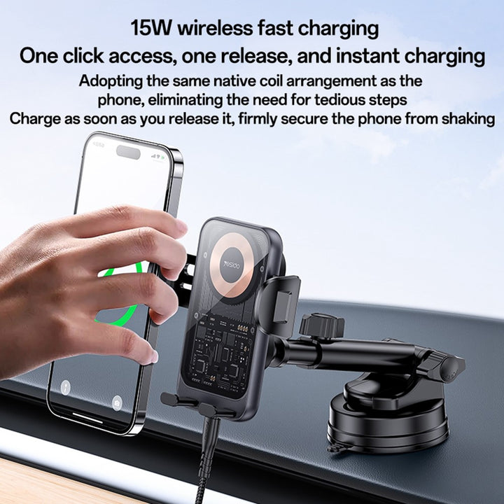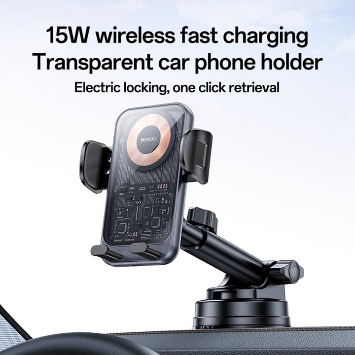 YESIDO C307 Phone Holder Stand 15W Wireless Charger Car Dashboard Suction Cup Bracket Auto Clamping