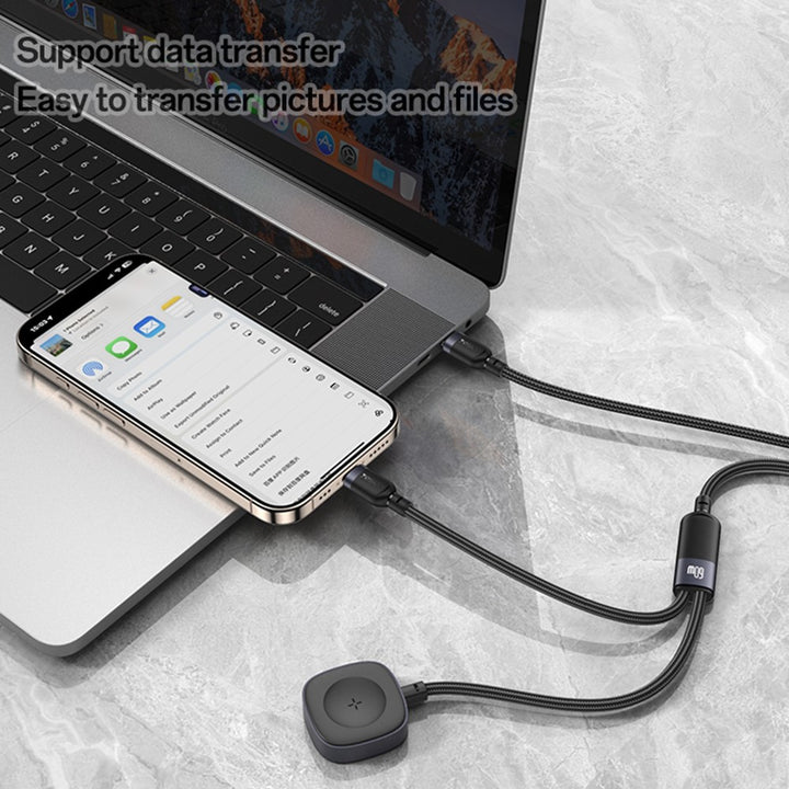 YESIDO CA136C 2 in 1 USB C to USB C / for Apple Watch Charger Dock 60W Fast Charging Cable