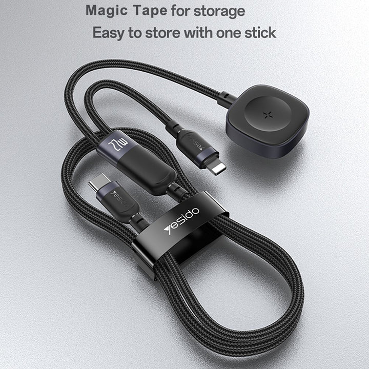 YESIDO CA136L 27W Fast Charging Type C to iP / for Apple Watch Wireless Charging Dock 2 in 1 Charging Cable